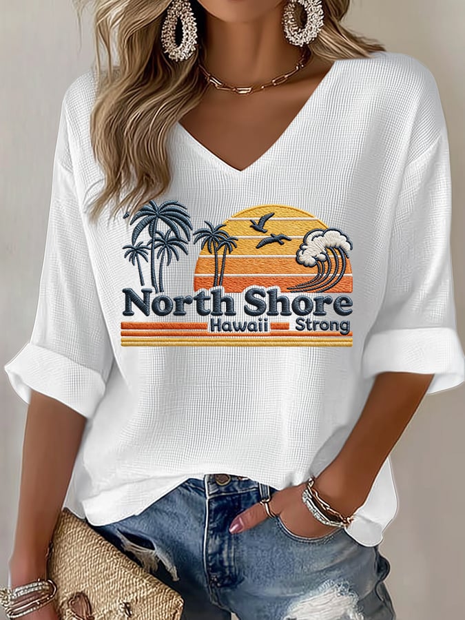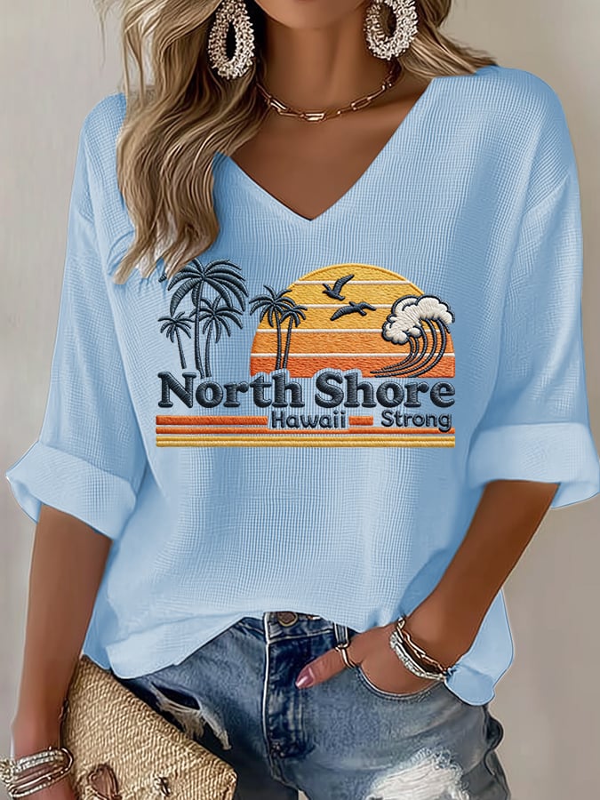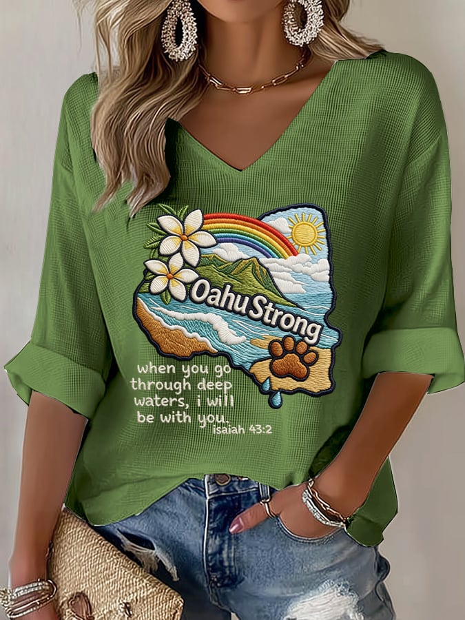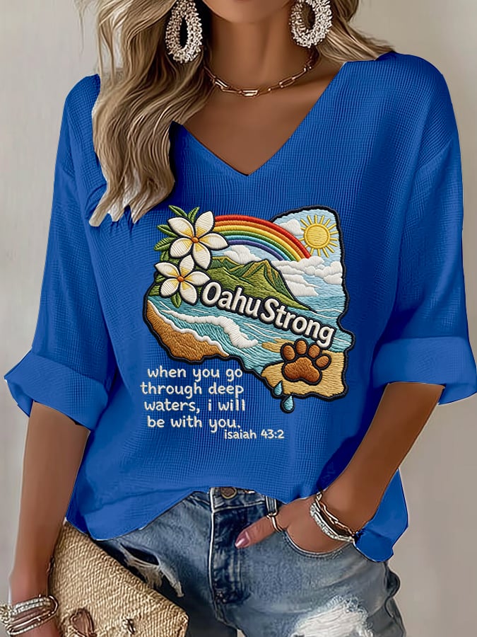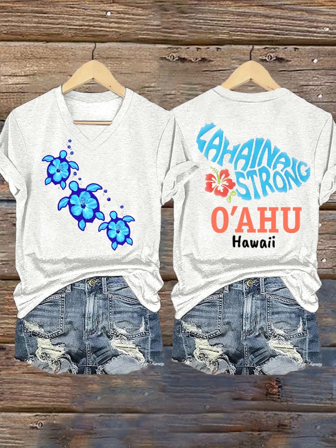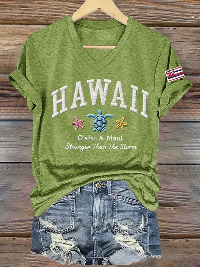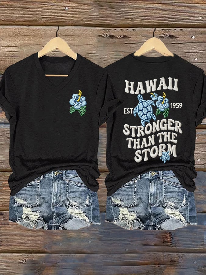 Women's Hawaii Stronger Than The Storm Print V Neck T-shirt