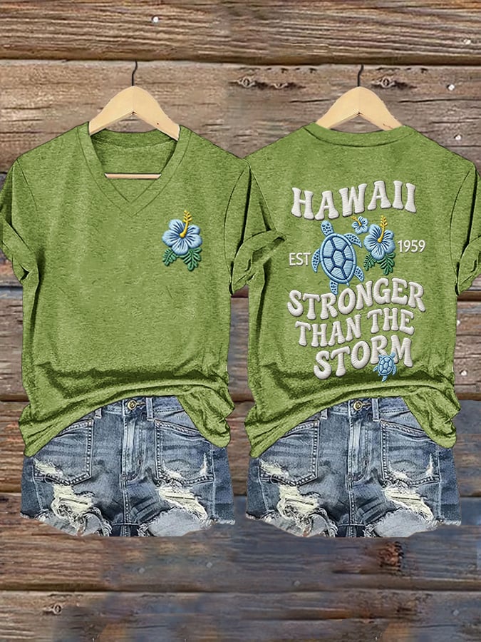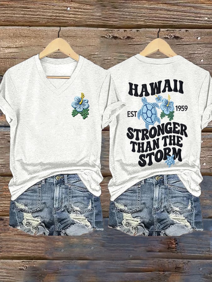 Women's Hawaii Stronger Than The Storm Print V Neck T-shirt