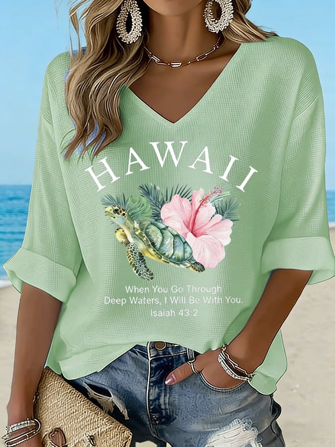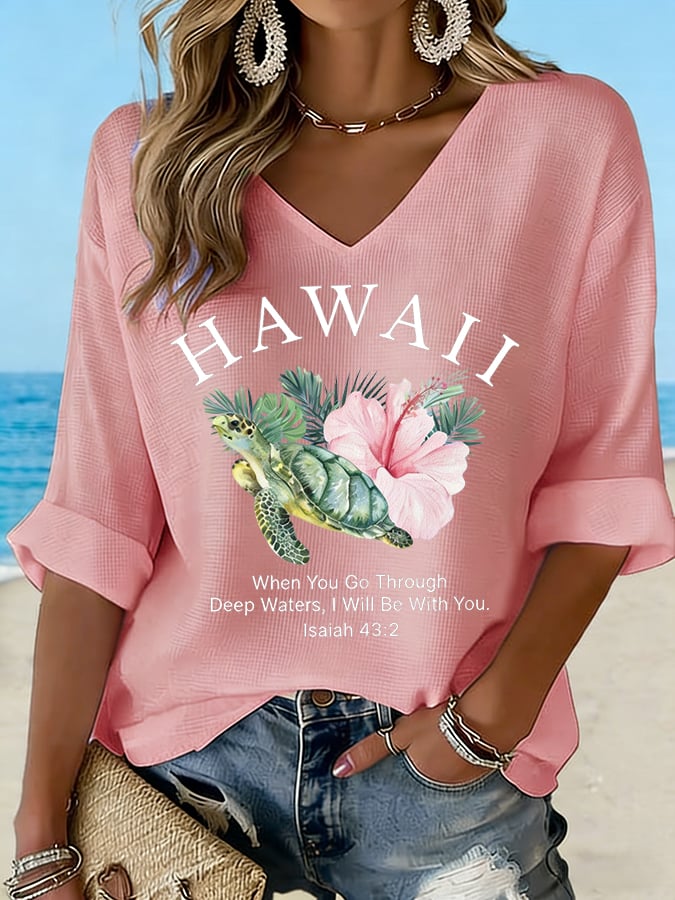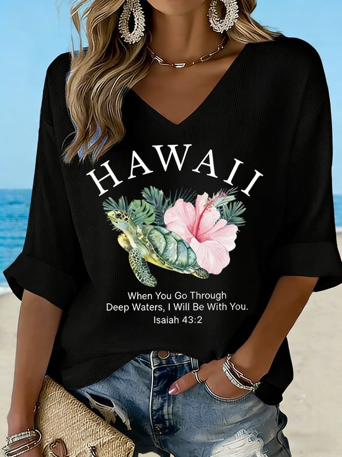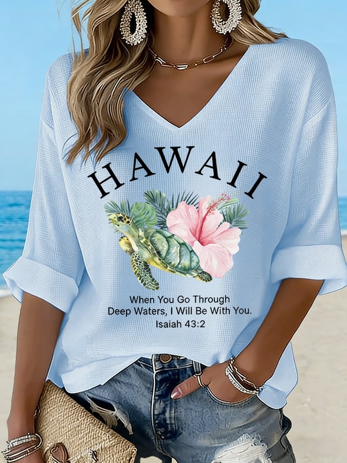 Women's When You Go Through Deep Waters I Will Be With You Print V Neck Top