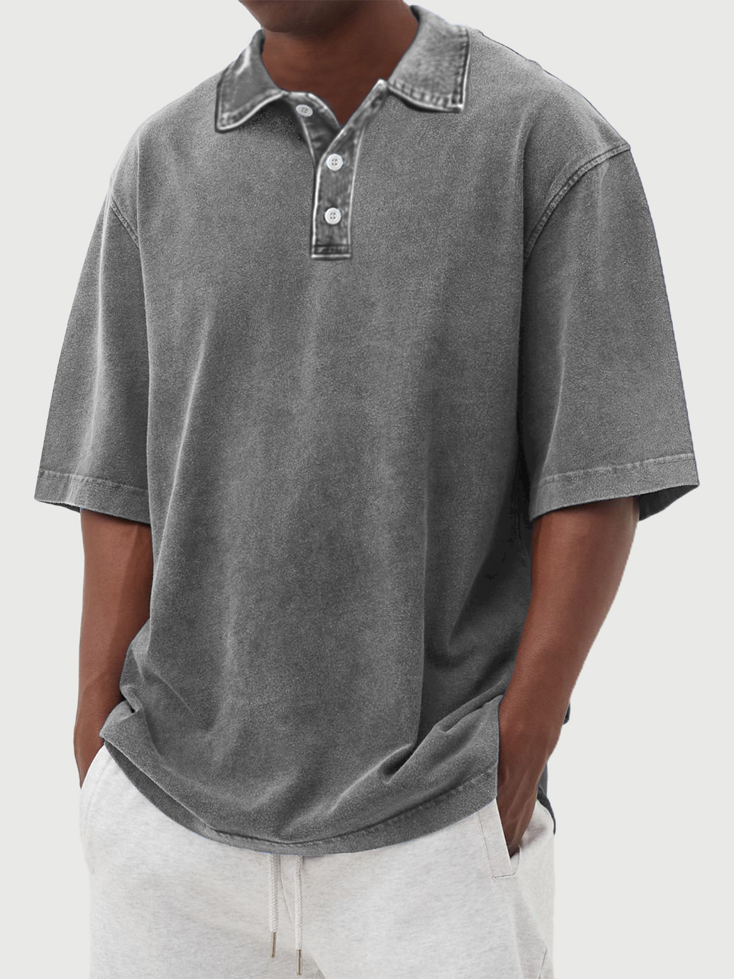 Men's washed and distressed 100% cotton daily casual POLO shirt